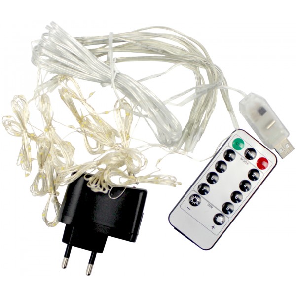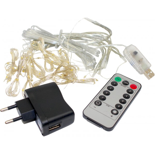 Гірлянда-штора електрич. Роса 144LED білий теплий L-1,8 H-1,2м,USB ,пульт 1931-07(50)