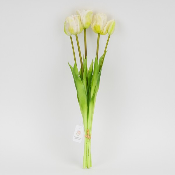 Букет тюльпанів латекс 5 бутонів, біло-зелений 49см №2026-005/white