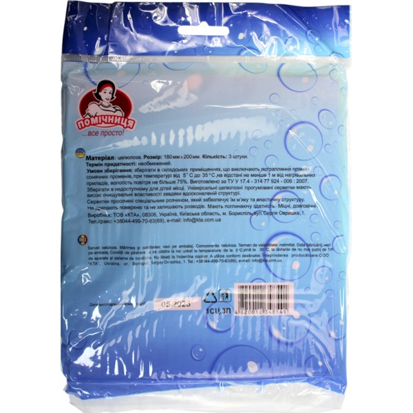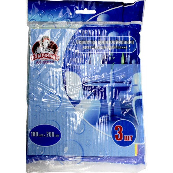 Серветка для прибирання "Помічниця" целлюлозна (3шт) прогумовані 18х20см №8541