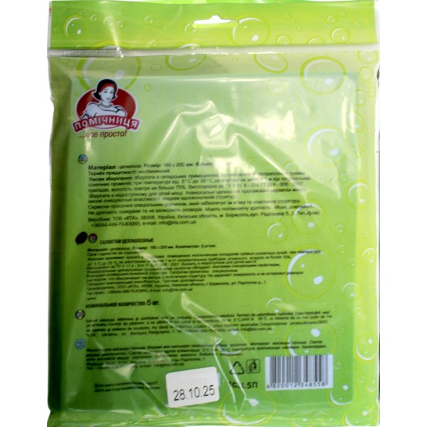 Серветка для прибирання "Помічниця" целлюлозна (5шт) прогумовані 18х20см №8558