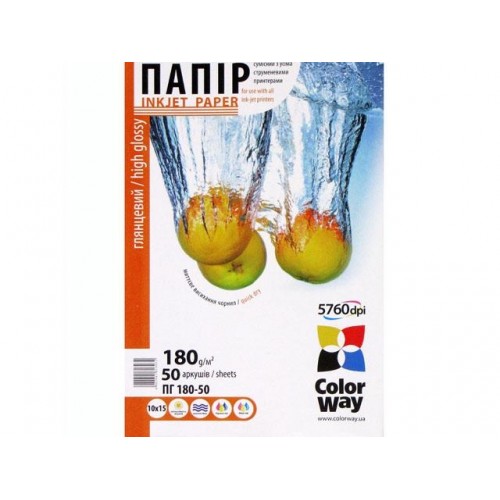 Фотобумага Фотобумага глянцевая CW 10х15см 180г/м2 PG180-50/PG1800504R 50 листов/упаковка ColorWay