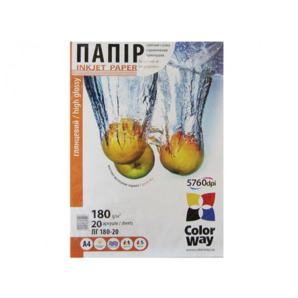 Фотобумага Фотобумага глянцевая CW А4 180г/м2 PG180-20/PG180020A4 ColorWay