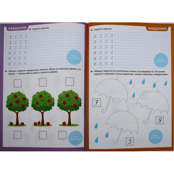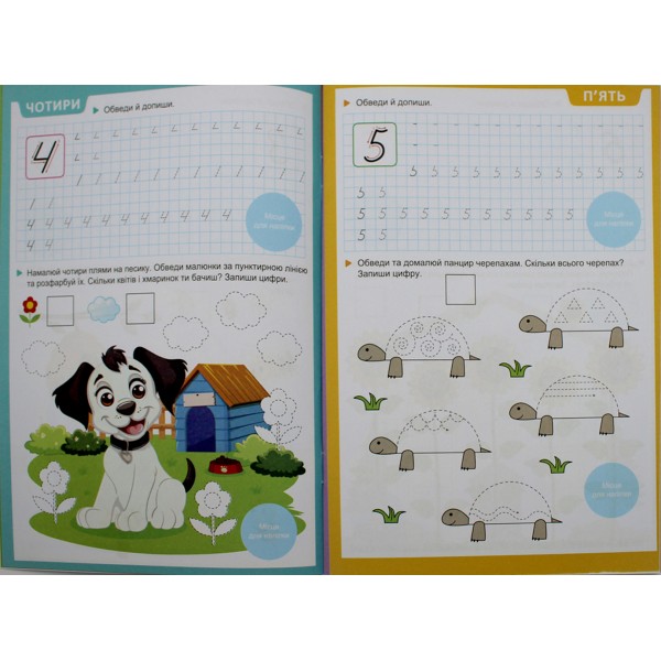 Книжка А5 "Прописи з мотиваційними наліпками: 4-6 Пишемо цифри" №НП-3/Рюкзачок/(30)