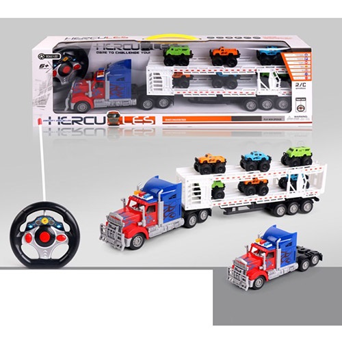 Трейлер на управлении, 57 см, светится, 6 машинок, на батарейке, в коробке, 66 х21х11см, 3 вида (12) 9090-9 E