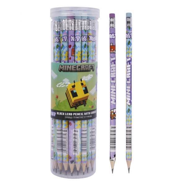 Олівець гр. "Yes" №280693 Minecraft.Spring HB круг. з гумкою,в пласт. тубі(36)(540)