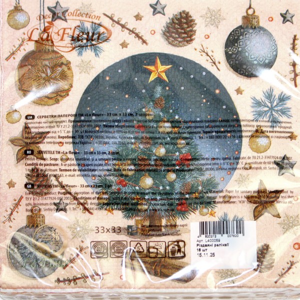 Серветки столові ТМ "La Fleur" 2-х шарові (16шт) НР Різдвяні реліквії(16)