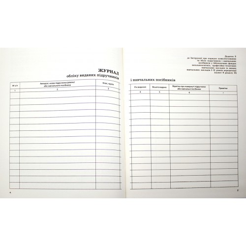Журнал обліку виданих підручників і навчальних посібників В376046У/0869/Ранок/