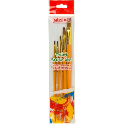 Набір пензлів 5шт Maxi MX60876 синтетика (пласкі 2,3,6,10,12) коротка ручка