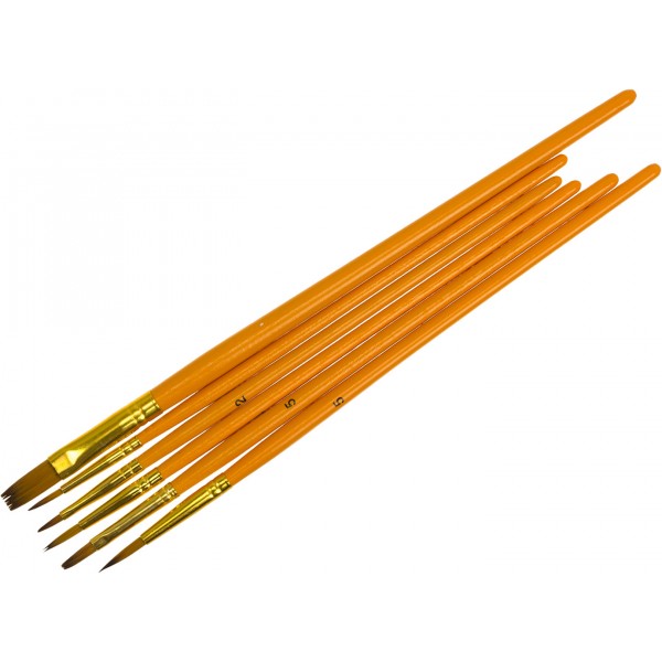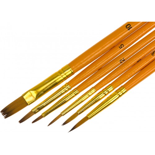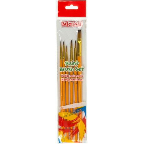 Набір пензлів 6шт Maxi MX60877 синтетика (пласкі 2,5,10 круглі 1,3,5) коротка ручка