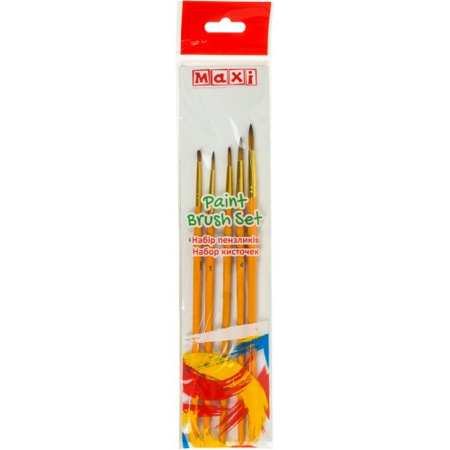 Набір пензлів для декору 5шт Maxi MX60889 синтетика (круглі 2/0,1,2,4,5) коротка ручка