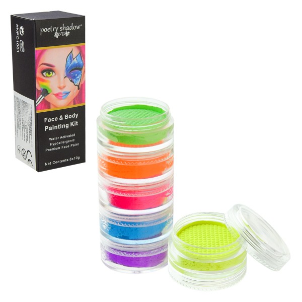 Аквагрим 6 кольорів,баночки по 10 гр+ кисточка для макіяжу короб. 15см №CN-113(50) КІ