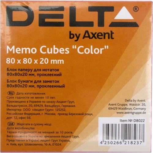 Блок для заметок клееный 80х80х20мм Delta by Axent Color (1) (120) 8022