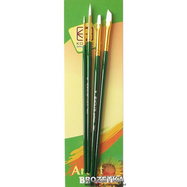 Набір пензлів худож. 4шт Kolos 7067/4270674 (Синтетика кругла2шт,плоска1шт,кут1шт)