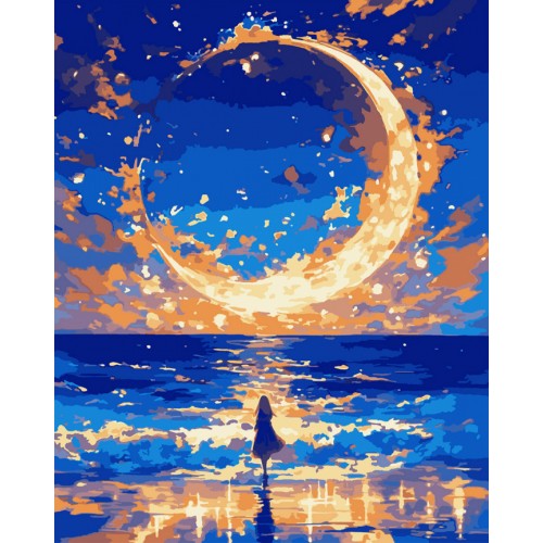 Картини по номерах "Місяць у вогнях" 40х50см,LED підсвітка №955068/Santi/