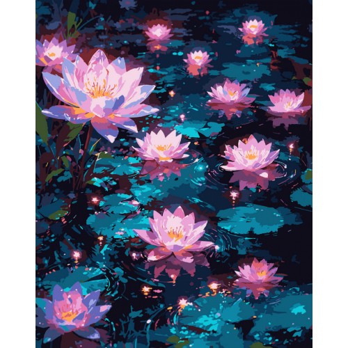 Картини по номерах "Чарівні лотоси" 40х50см,LED підсвітка №955430/Santi/