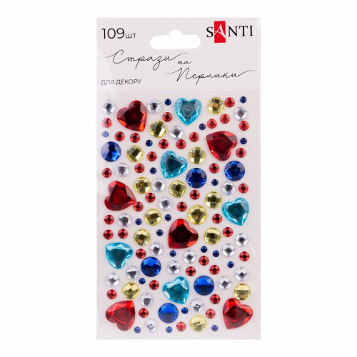 Стрази самокл. "Santi" "Heart mix" різнлкольорі 109шт №743009