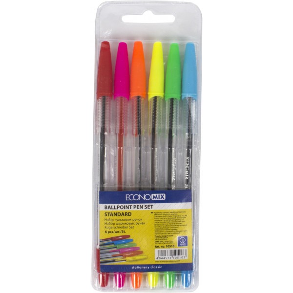 Набор ручек шариковых Economix Standart 6 цветов(20) E10510