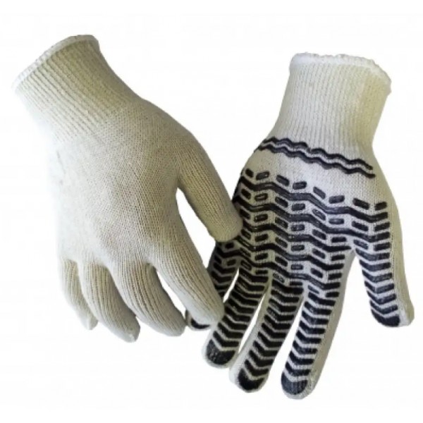 Рукавиці трикотажні "Werk" білі,чорна ПВХ "хвиля",розмір 10 №WE2103(12)(600)