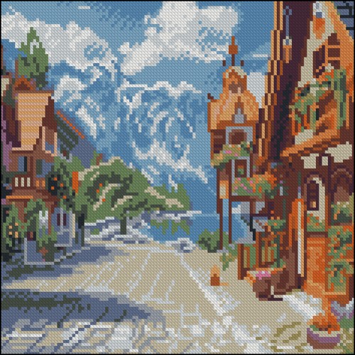 Алмазна мозаїка "Strateg" Гірське містечко 30х30см №FZ3030-05