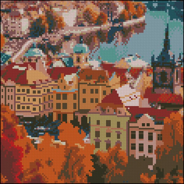 Алмазна мозаїка "Strateg" Осіннє місто 30х30см №FZ3030-27