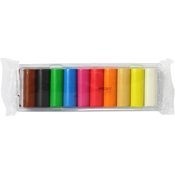 Набір пластиліну з 10 кольорів, 200 грамів. Легко розминається, не фарбує руки, не липне до пальців. Кольори легко змішуються.