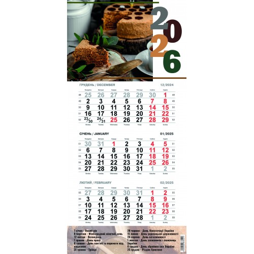 Календар кварт. настін. "Тортик" 2026 ,3 пружини