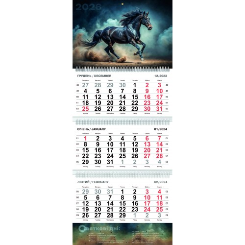 Календар кварт. настін. "Чорний кінь" 2026 ,3 пружини
