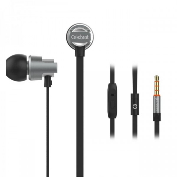 Навушники вакуумні метал. Celebrat C8 1,2м black+мікрофон