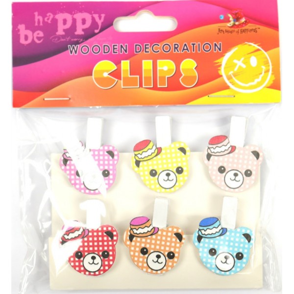 Прищіпки дерев'яні для декорування "Ведмедики" 6шт №200180/Мандарин/