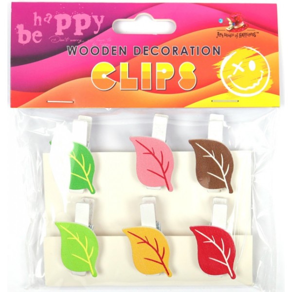 Прищіпки дерев'яні для декорування "Листочки" 6шт, 35х6мм №200177/Мандарин/(1)(24)