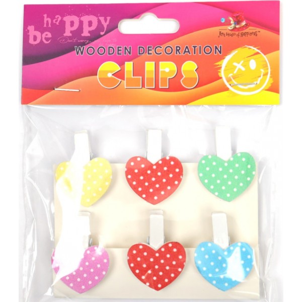 Прищіпки дерев'яні для декорування "Сердечка в горошок" 6шт, 35х6мм №200184/Мандарин/(1)