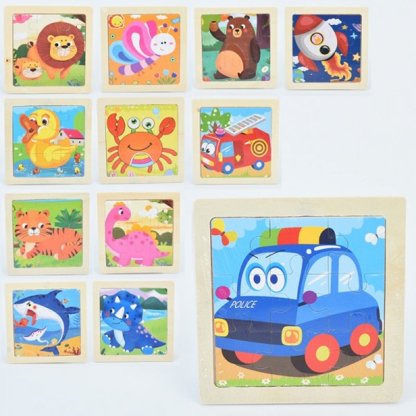 Іграшка дерев'яна Пазли,тварини,транспорт,морс. мешканці,в кульку,11х11х0,5см №MD1503(100)