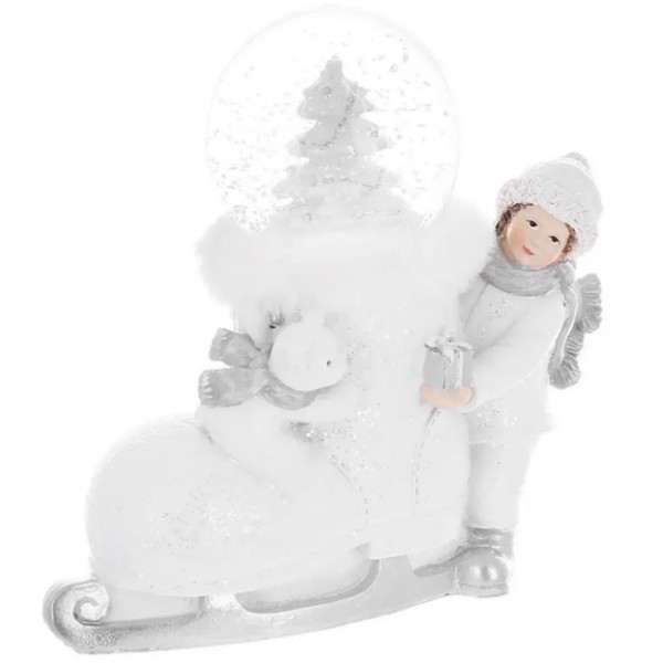 Статуетка полістоун"Хлопчик з ковзаном та ведмедиком"з водяною кулею16х15см№890-209/Bonadi