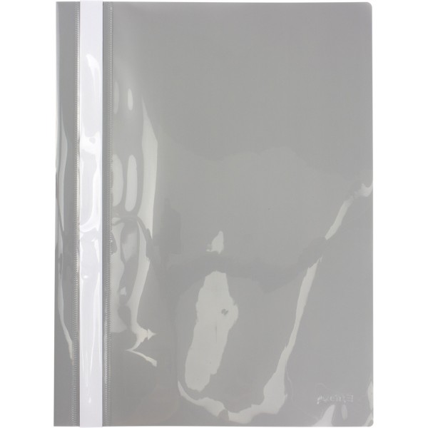 Швидкозшивач А4, матеріал: поліпропілен. Товщина лицевої сторони: 120 мкм, зворотної: 150 мкм. Колір: сірий