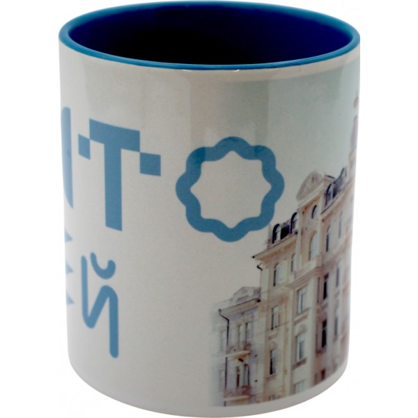 Чашка №6 "Готель Савой" з блакитною кольоровою ручкою та серединкою/НСВ/