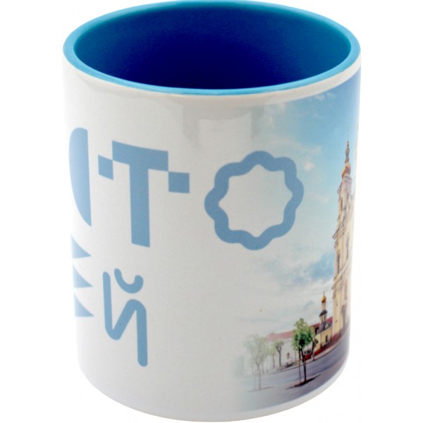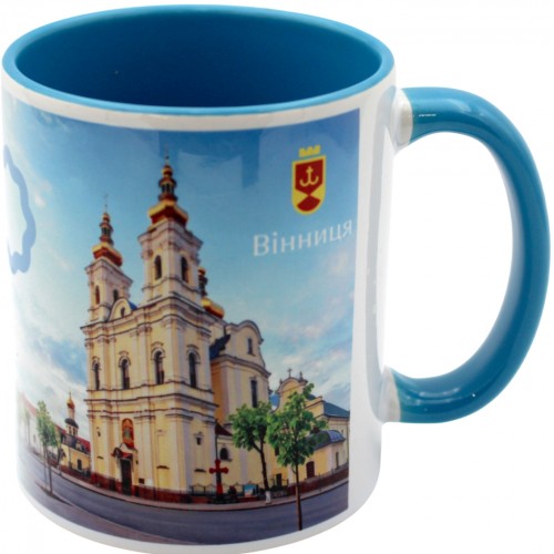 Чашка №7 "Собор" з блакитною кольоровою ручкою та серединкою/НСВ/