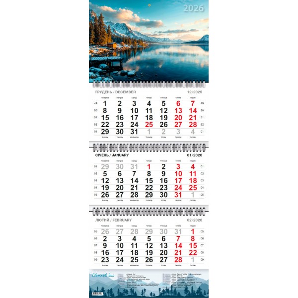 Календар кварт. настін.  Гірське озеро 2026 ,3 пружини