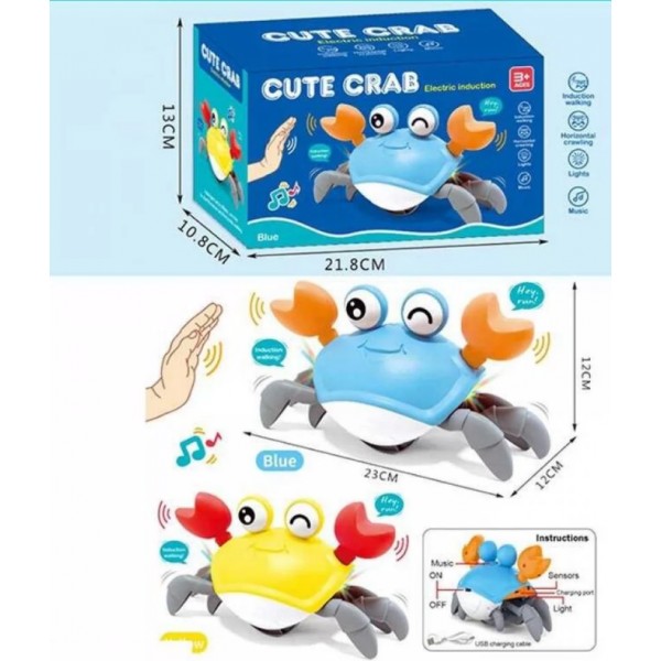 Краб 23см,реагує на руку,бігає,муз.,світ,USB,на акум.,в кор-ці,22х13х11см,2кольор.6722E