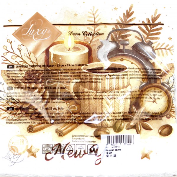 Серветки столові ТМ Luxy 3-х шарові (18шт) НР Аромат Свята(16)