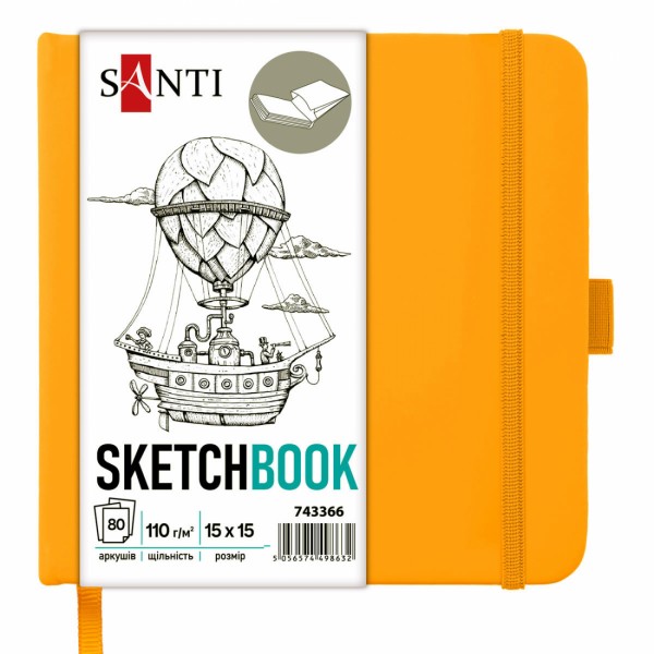 Скетчбук 80/110 150х150мм тв.обкл. PU, жовтий №743366/Santi/(16)