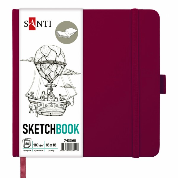 Скетчбук 80/110 180х180мм тв.обкл. PU, сливовий №743368/Santi/(20)