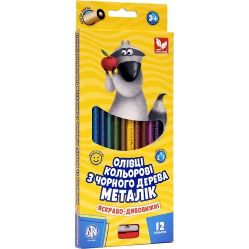 Карандаши цветные 12 цветов Школярик из черного дерева с точилкой (12) №312114002