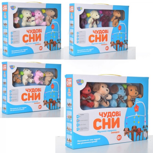 Карусель на кроватку музыкальная, 4 подвески плюш,в коробке,38,5 х28,5 х6,5 см D120-21-22-23