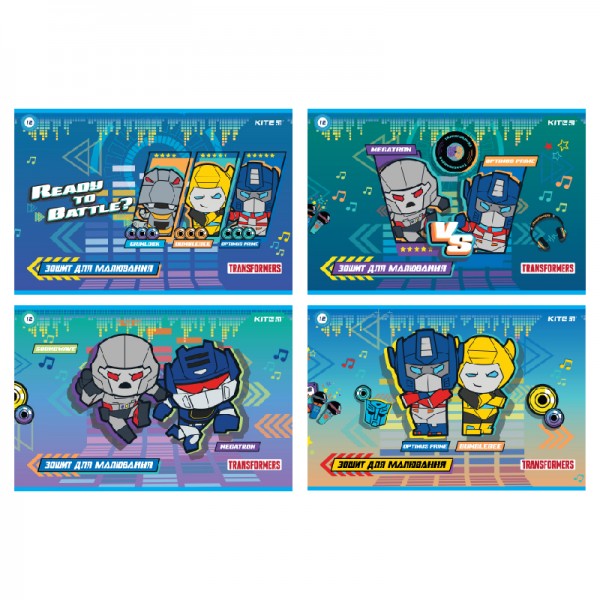 Тетрадь для рисования на скобе 12/100 A4 Transformers софт тач УФ лак Kite (20) (160) №TF22-241