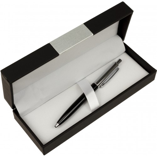Металевий корпус ручки покритий чорним лаком з хромованими деталями. На корпус можна наносити лазерне гравіювання. Для зручності кріплення є пружинний кліп.