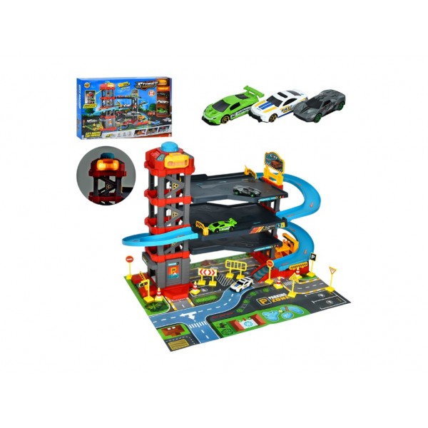 Гараж 4 поверхи,звук,світло,ліфт мех.,машинки 3шт 7см,64 предм.,в кор-ці MH-627(8)