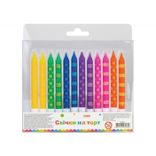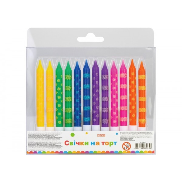 Набор свечей в торт 12 шт с блестками 8 см с подставками (12) (144) MX627085 Р