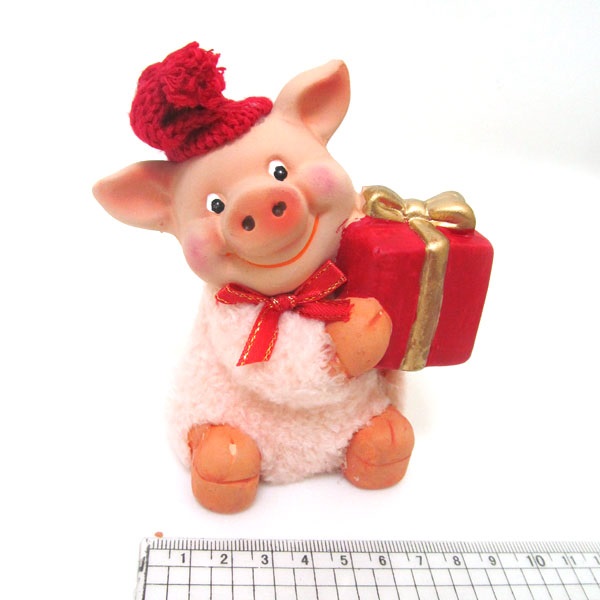 Сувенир керамический фигурка Свинка в шапке с подарком Вител (2) DSCN6878