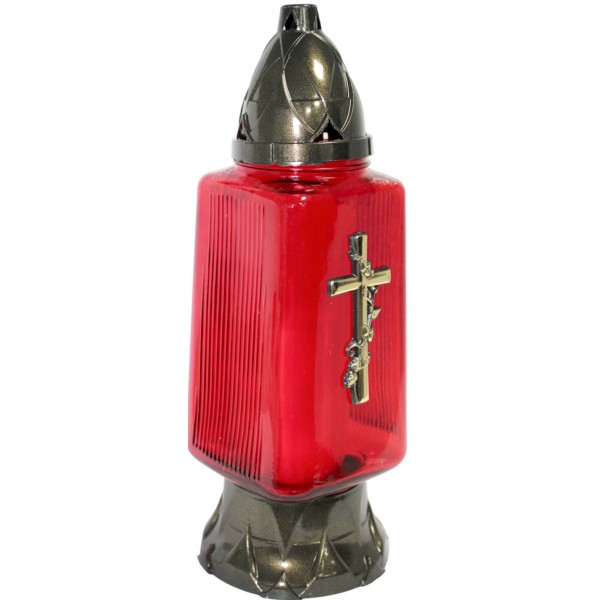 Лампада скляна h-30см "Хрест" прямокутна червона №№Z-1240(8)