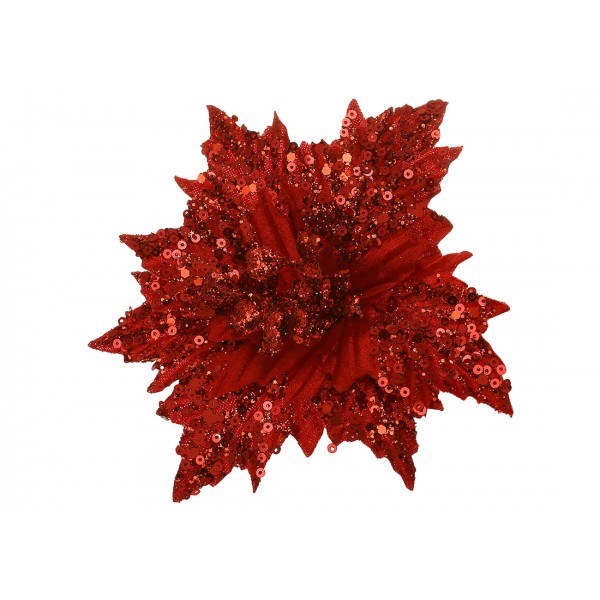 Пуансетія 17см оксамитова в паєтках,червоний №H39-173/Bonadi/